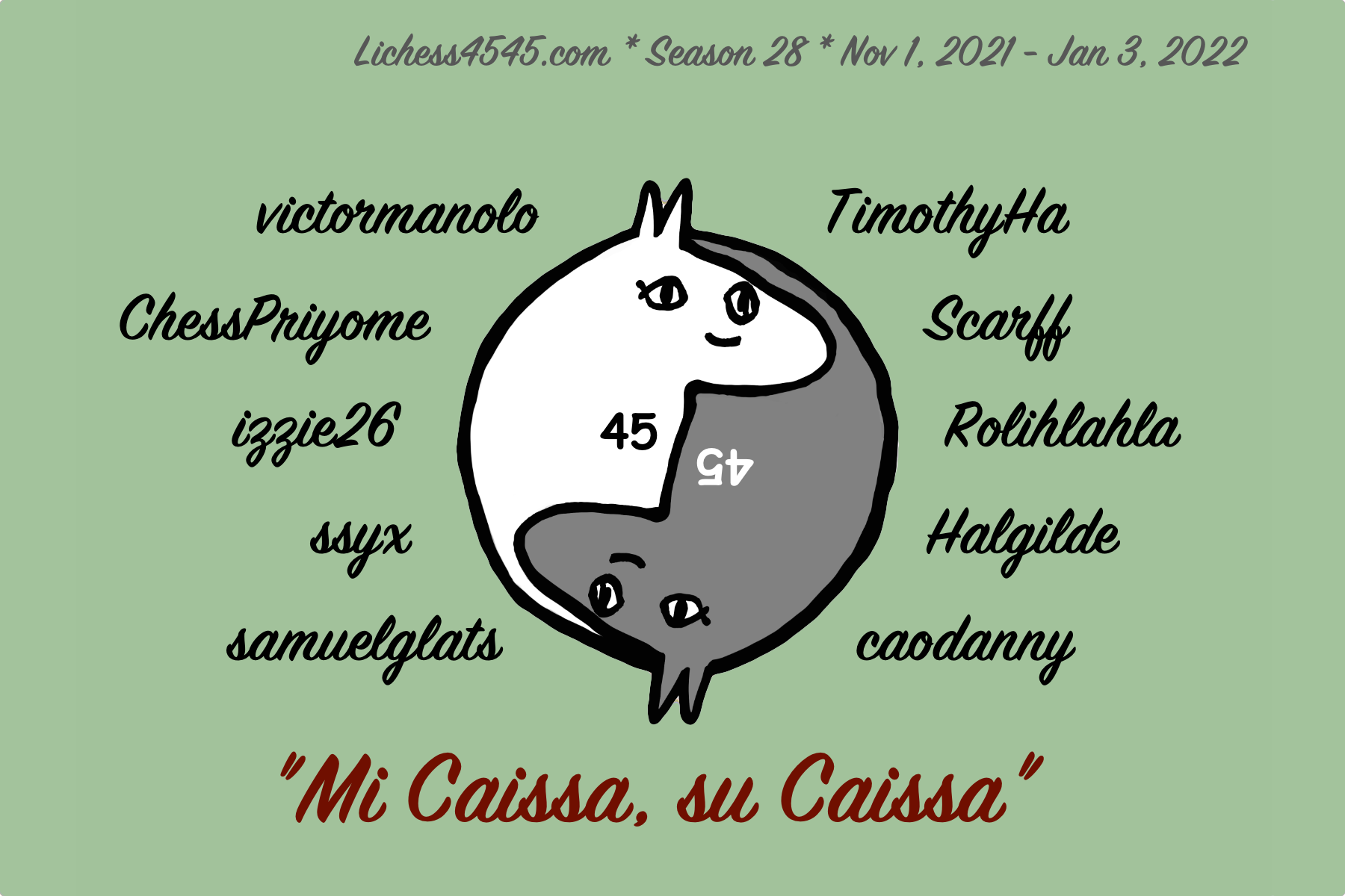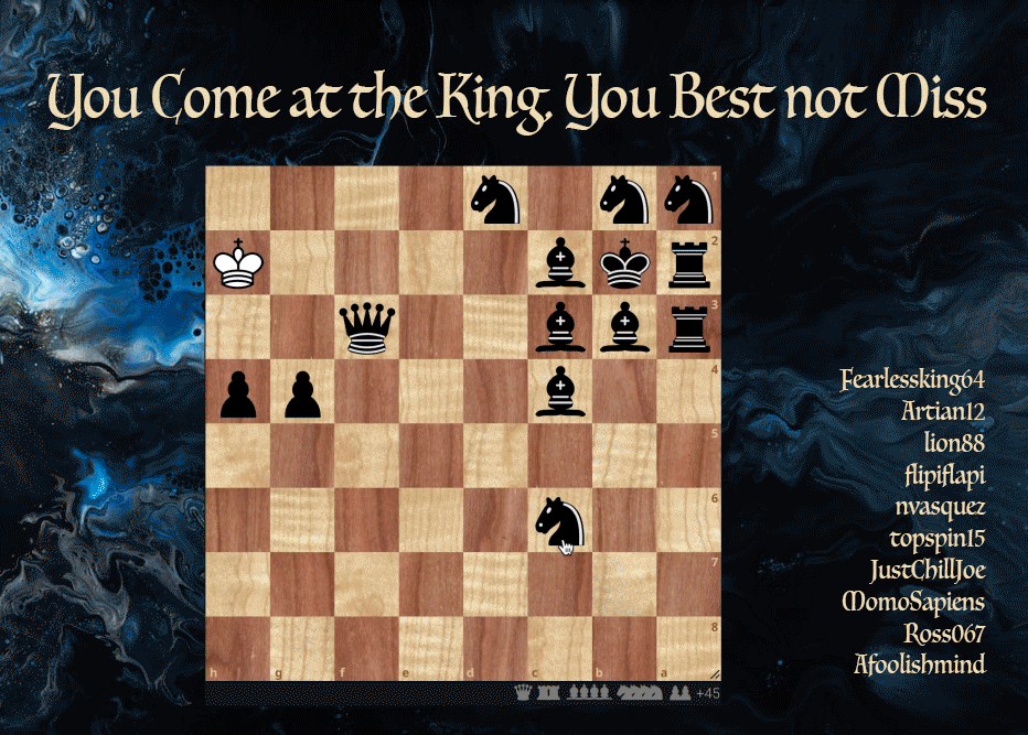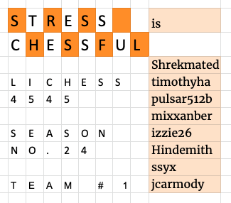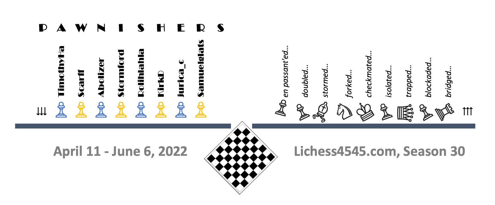 Here are all the Lichess4545 team logos that have ever been made, according to me. They’re shown in reverse season order, with recent seasons first. Click on each image to enlarge it. Depending on your browser, some of the gallery symbols might not show up for you; they don’t for me :)